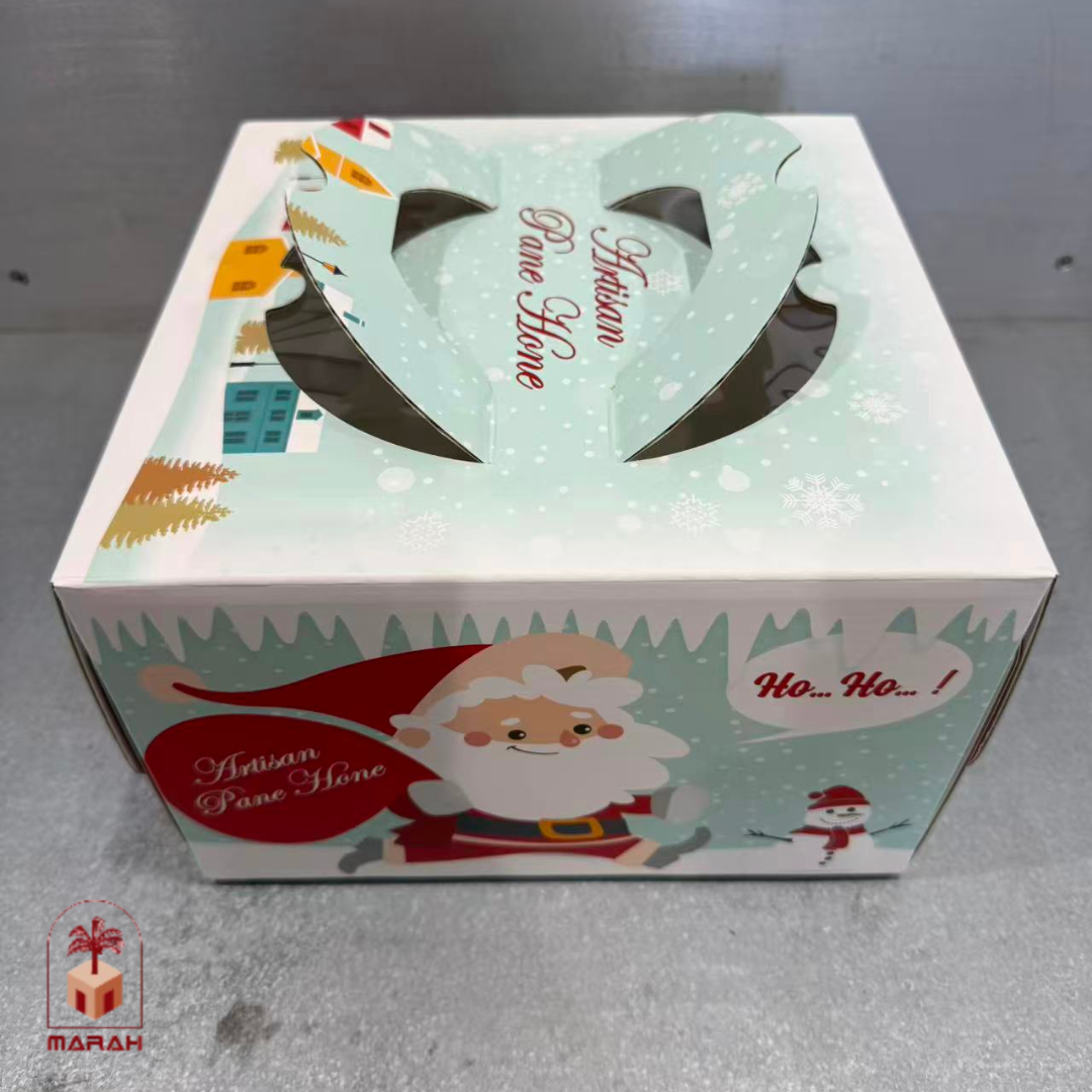 Marah’s Christmas Cake boxes are durable, stylish, and affordable with easy-to-carry handles that are perfect for transporting cakes, pastries, and baked goods. Very reliable, these Christmas Cake boxes with handles allow for viewing of the products inside.