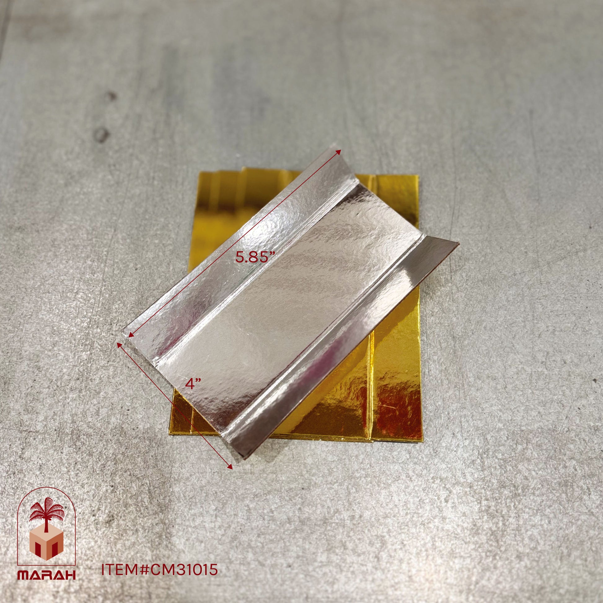 Buy pastry mats with rectangular foldable pastry boards. Marah's pastry boards are sturdily made for single portions to ensure the safe and elegant display of your pastry. Reversibly gilded with gold and silver that can match many decorative themes. Qualifies for free shipping in New York and New Jersey with a minimum order quantity.