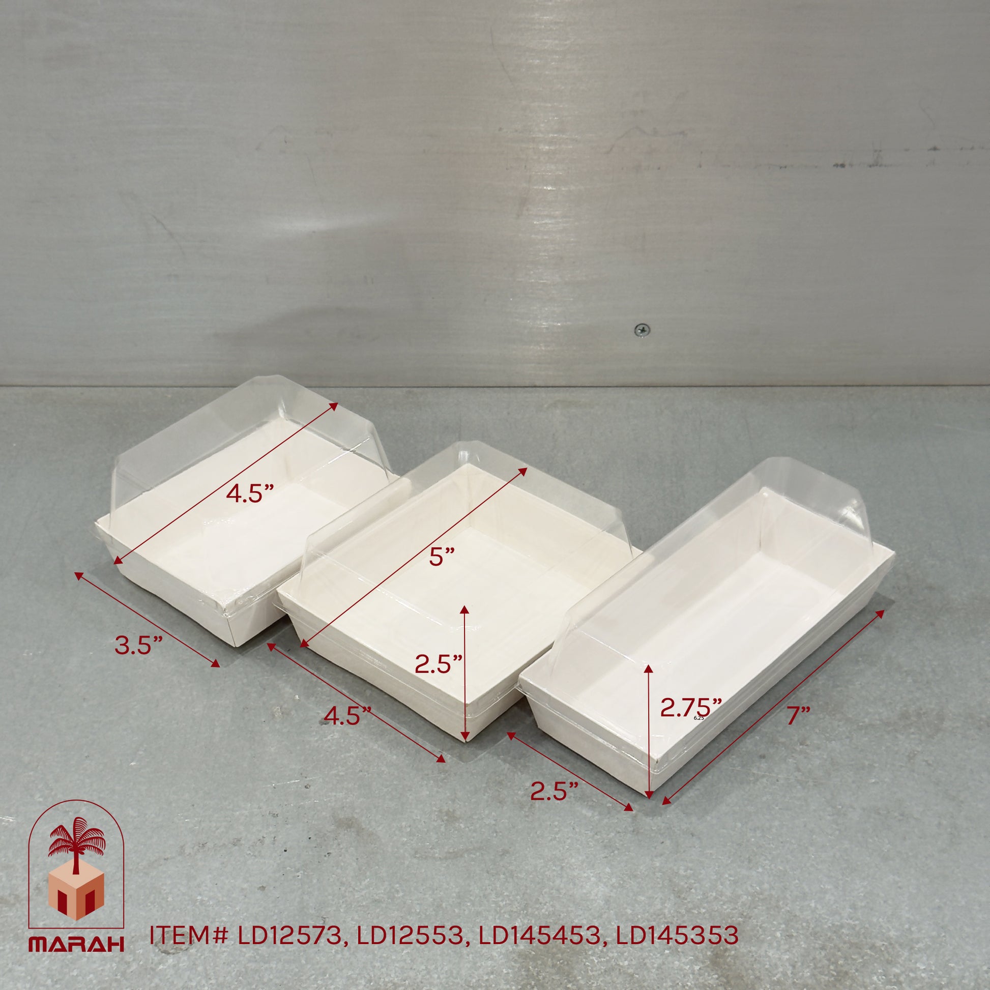 Marah's Plastic Lunch Boxes with Snap Lid on the corners. Great for a variety of foods, snacks, desserts, and as charcuterie boxes. Ensure your food stays fresh with these Plastic Lunch Boxes with Snap Lid and oil/water resistant coating to prevent oil from seeping out or moisture seeping in.